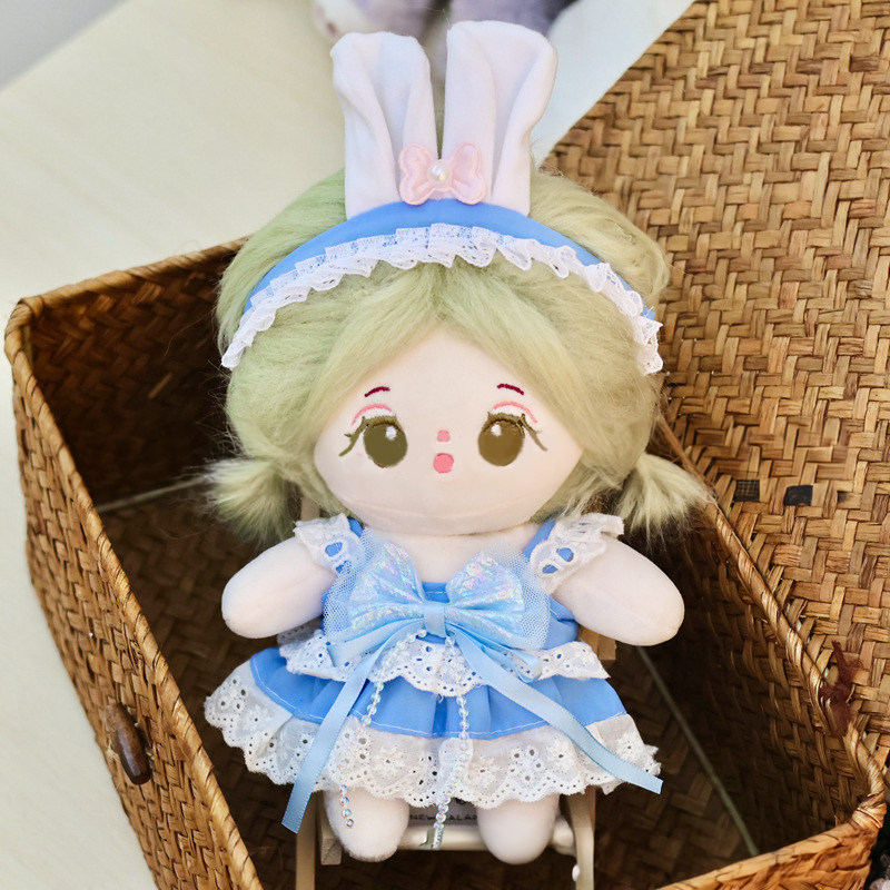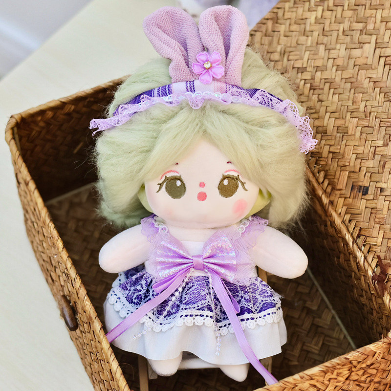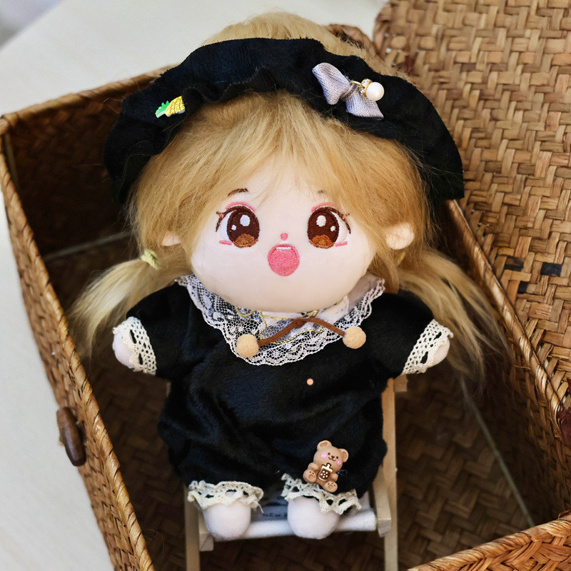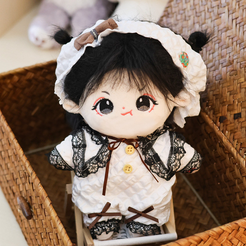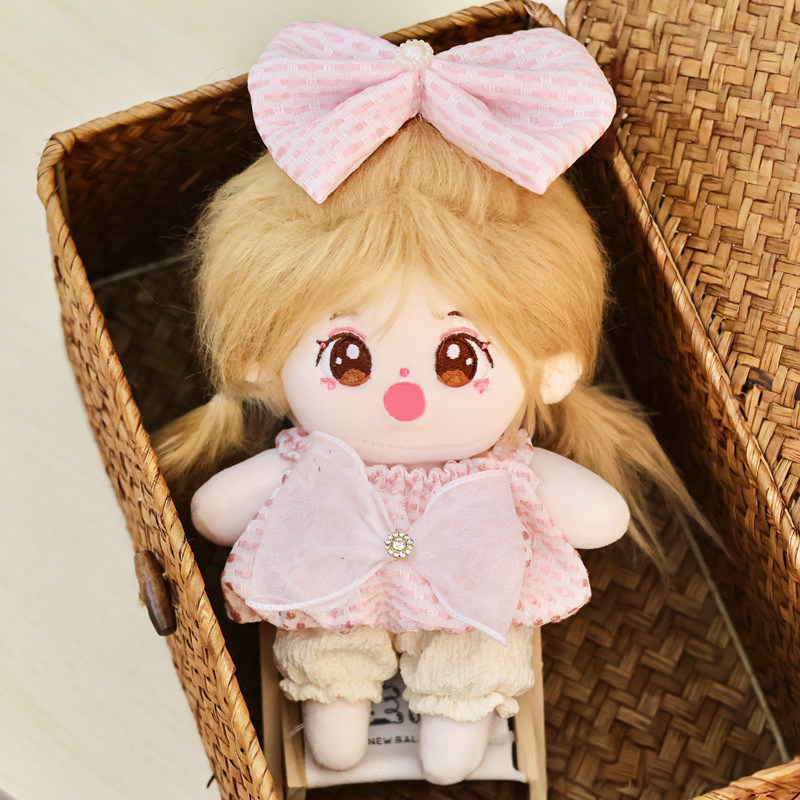 20cmサイズのぬいぐるみにぴったりで、胸元の大きなリボンと裾のレース飾りが上品な印象を演出します。