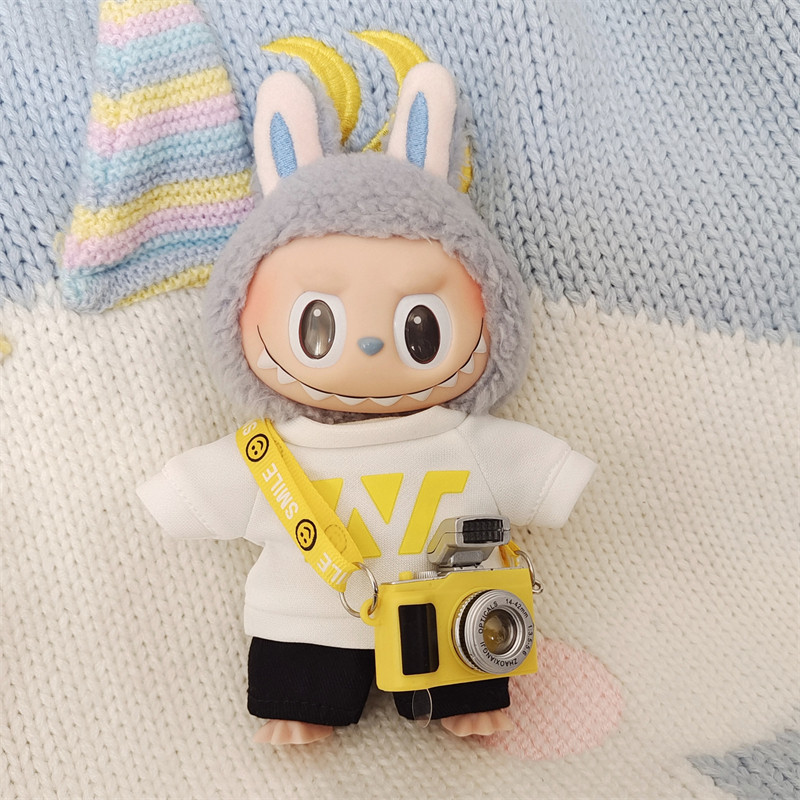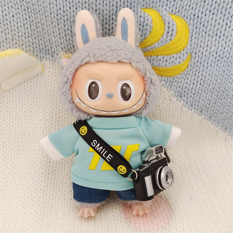 15センチサイズのぬいぐるみにぴったりな可愛らしいカジュアル衣装です。 笑顔マークがついた斜め掛けストラップとミニカメラの小物がセットになっており、写真撮影が好きなキャラクターを演出できます。 半袖トップスには大きな文字ロゴがデザインされ、短パンとの組み合わせで活動的な印象に仕上がります。 こちらのぬいぐるみ服は日常のお出かけシーンや撮影ごっこ遊びにおすすめの一着です。